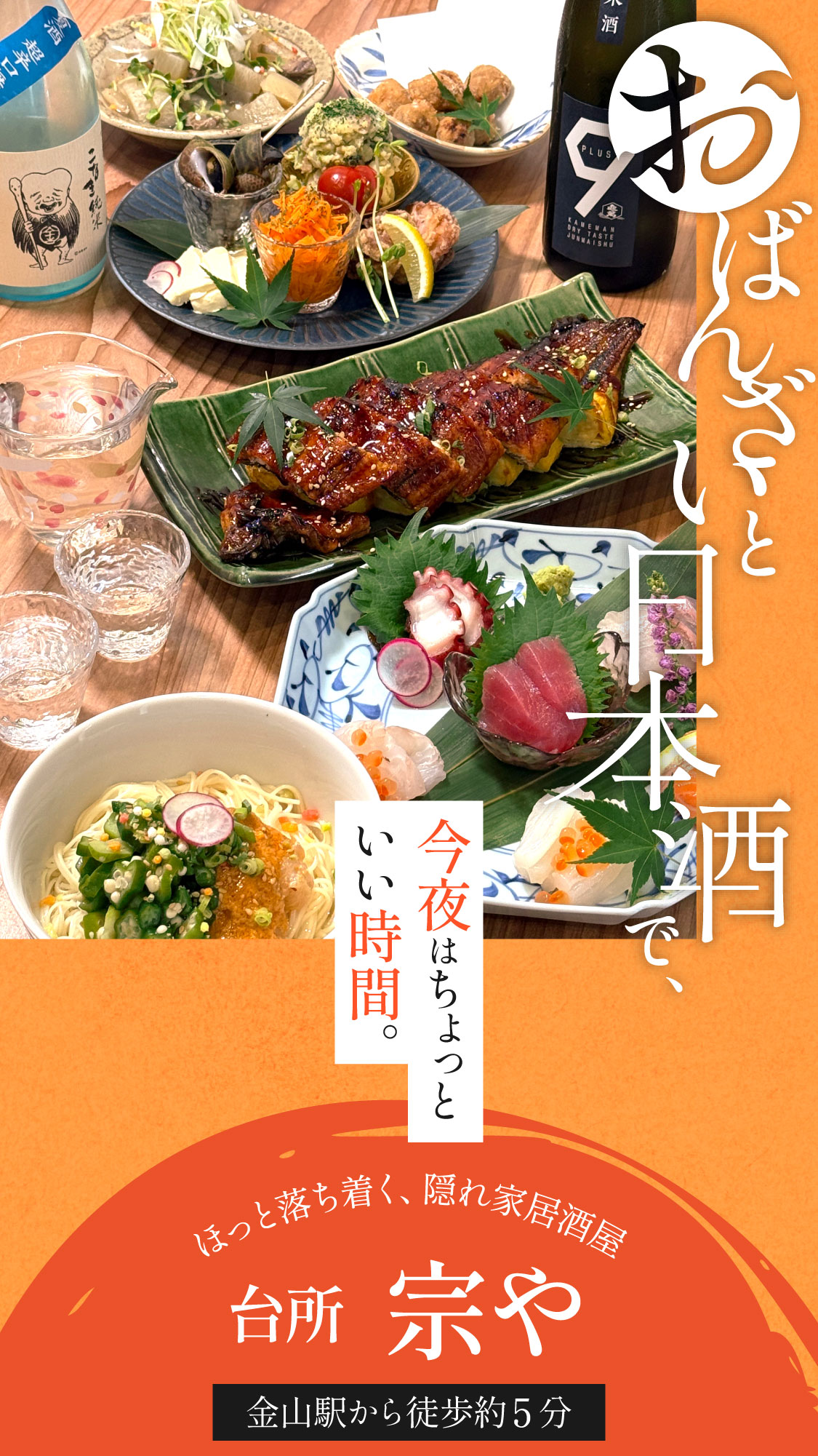 また、喧騒を離れた金山の隠れ家居酒屋として、一人飲みから接待まで幅広くご利用いただけます。