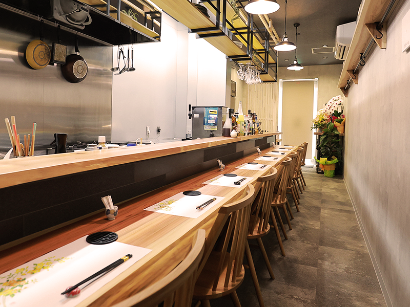 カウンターを中心にした落ち着いた空間で、ゆったりとお過ごしいただけます。